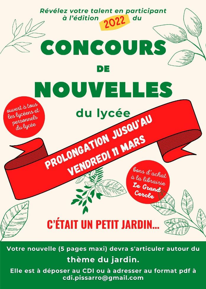 ANNONCE DES RÉSULTATS Le jury de l’édition 2022 du concours de nouvelles du Lycée Pissarro a (...)