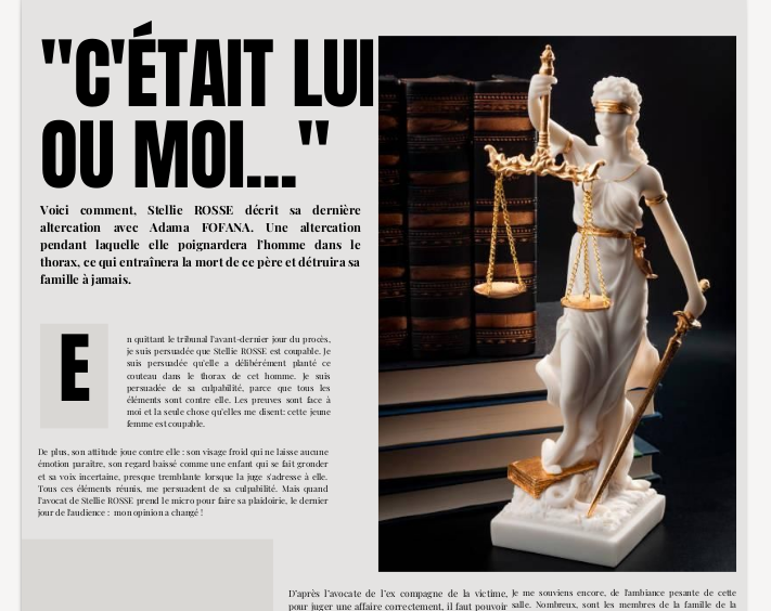 Voici deux chroniques judiciaires qui présentent l’affaire et le procès ainsi que quelques dessins d’audiences.