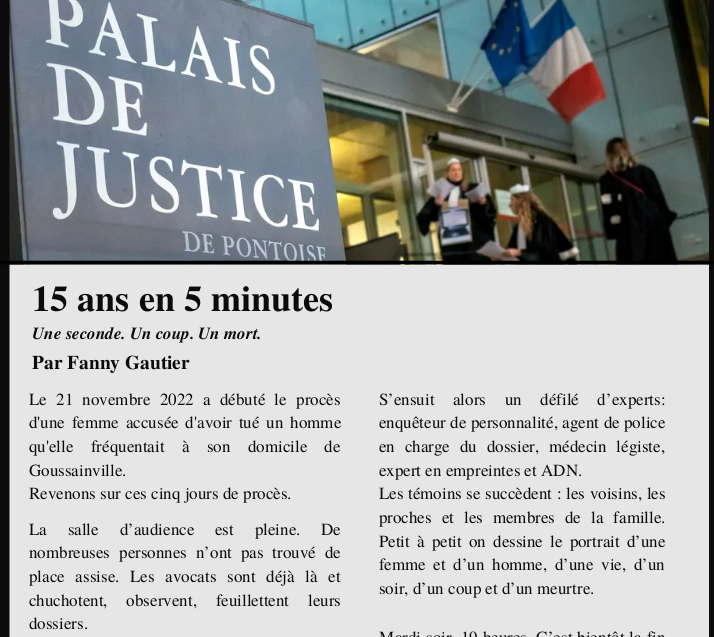Fin novembre 2022, les élèves de S12 ont assisté à un procès aux assises du TGI de Pontoise.