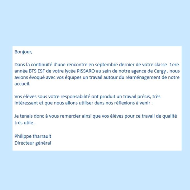 L’ensemble de ces propositions a été transmis à l’équipe de Soliha. Les retours ont été nombreux et très positifs, notamment celui du directeur général de la structure. "